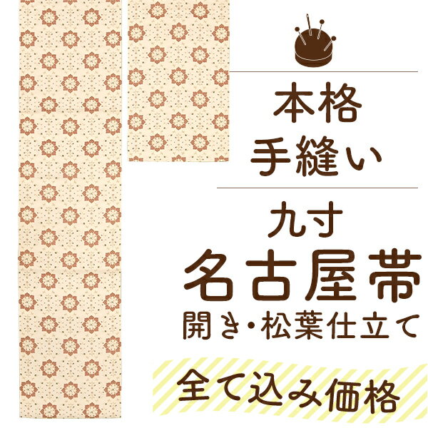 九寸 名古屋帯 開き 松葉 仕立て 国内 手縫い 仕立て 三河綿芯込み 本格 手縫い お誂え フルオーダーメイド なごやおび 手ぬい 手縫い仕立て 開き仕立て 帯のお仕立て 格安 帯芯込み 安心 の セット価格 みやがわst4003