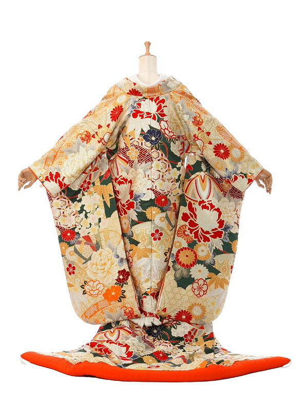 ■付属品 色打掛/掛下/掛下帯/長襦袢/箱せこセット 帯あげ/角隠し/肌着(ワンピースタイプ) 足袋/腰ひも(4本)/伊達締め(2本)/草履/ 帯板(2枚)/帯まくら/打掛ベルト 色打掛・紋付レンタル フルセット ☆神前式、前撮りなどに大好評☆格安で和装レンタル☆ ===色打掛=== ■着物対応可能身長・サイズ     150cm〜165cmくらい 7号〜13号くらい ■色/柄 深緑/金地 鞠に扇面 ■生地 表地:正絹 ===紋付=== フルセット詳細はこちら ■ウエストサイズ:60〜100cmまで ■ご身長160cm〜180cmまで(ご身長に合わせた羽織袴をご用意いたします) 【紋付袴セット内容】 1.羽織 2.着物 3.袴 4.長襦袢 5.羽織紐 6.角帯 7.白扇 8.肌襦袢 9.腰紐2本 10.衿芯 11.草履 12.足袋(プレゼント) ※付属品の肌襦袢は対応身長を参考にしてお付けしておりますので、サイズ幅が合わない場合は、お客様ご自身でU首シャツなどご用意くださいませ。