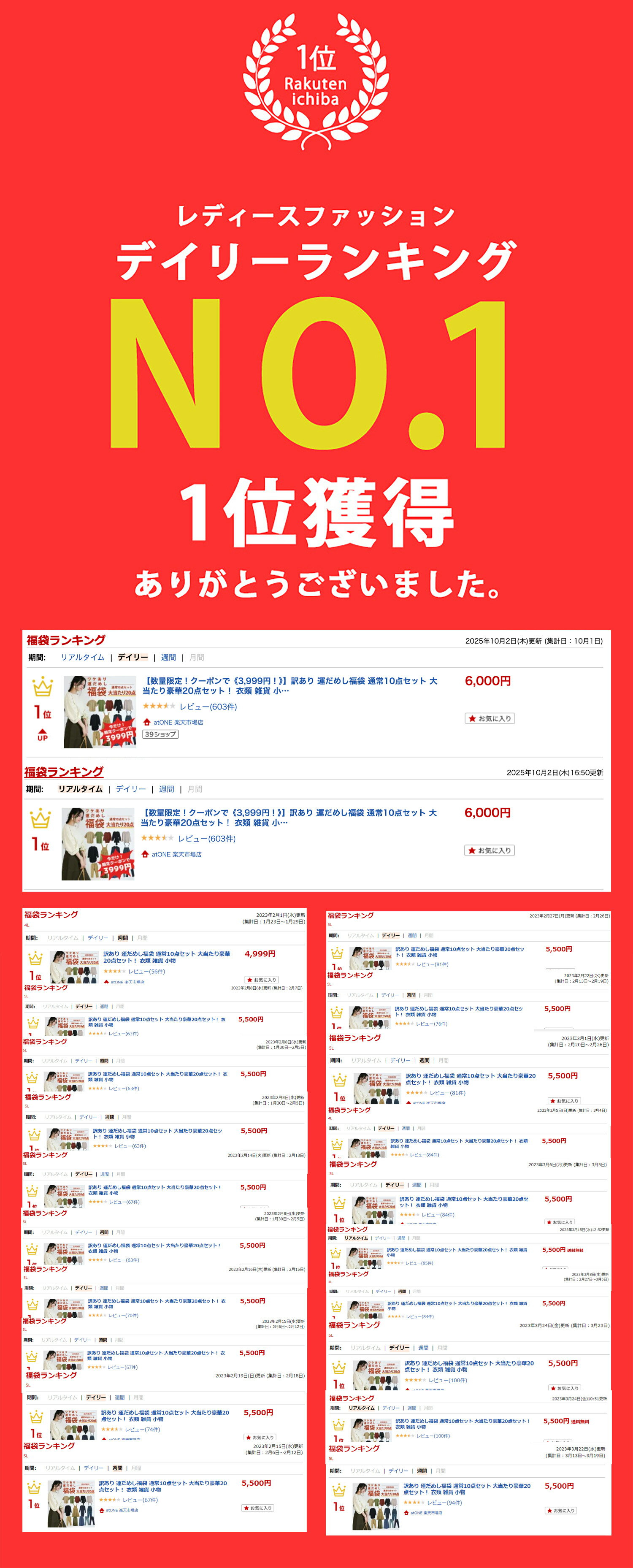 【期間限定 送料無料☆1/1 23:59まで】1枚600円!? 訳あり 運だめし福袋 通常10点セット 大当たりの場合は豪華20点セット! 衣類 2025 2026 大きいサイズ ハッピーバッグ 格安 トップス ボトムス アウター 半袖 長袖 ニット ワンピース 春 夏 秋 冬 レディース ランダム