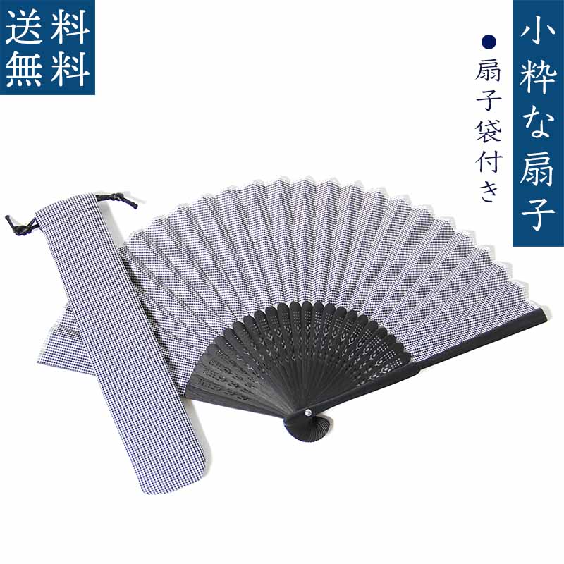 【送料無料 アウトレット】扇子 格安 マイクロチェック かわいい ブラック ホワイト メンズ レディース 扇子袋付き デッドストック 男性 女性 男女兼用 浴衣 甚平 お祭り デート おしゃれ シンプル 渋い 上品 格好良い 高見え デザイン うちわ 和小物 和雑貨 プレゼント ギフト マイクロチェックのテキスタイルを使用した、爽やかでかわいい夏の扇子です。