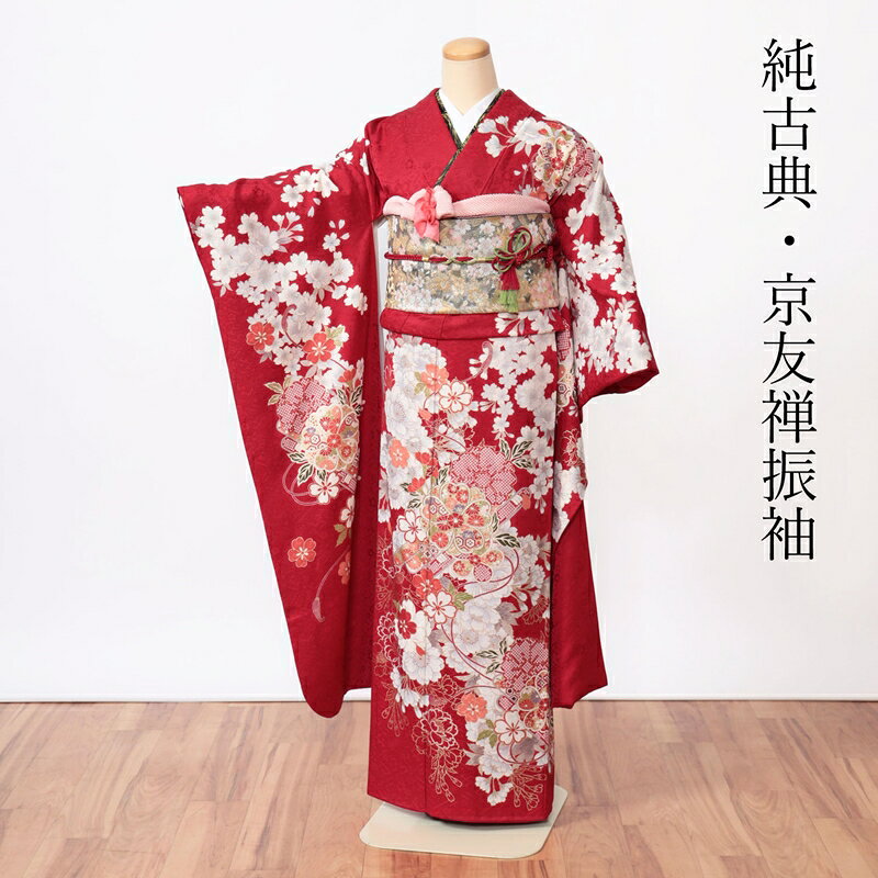 赤地に桜や鹿の子文様など純古典な柄行となっています。